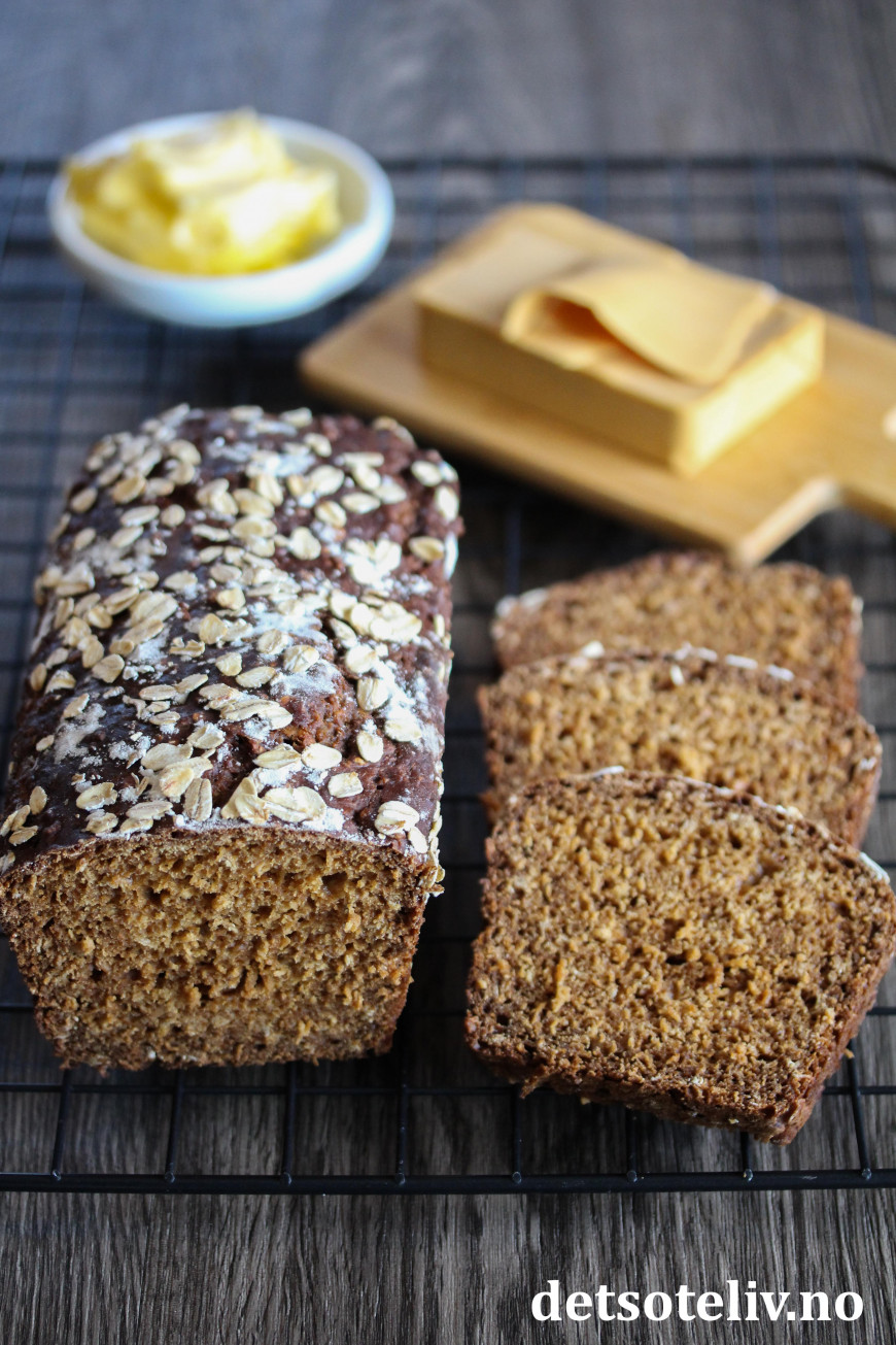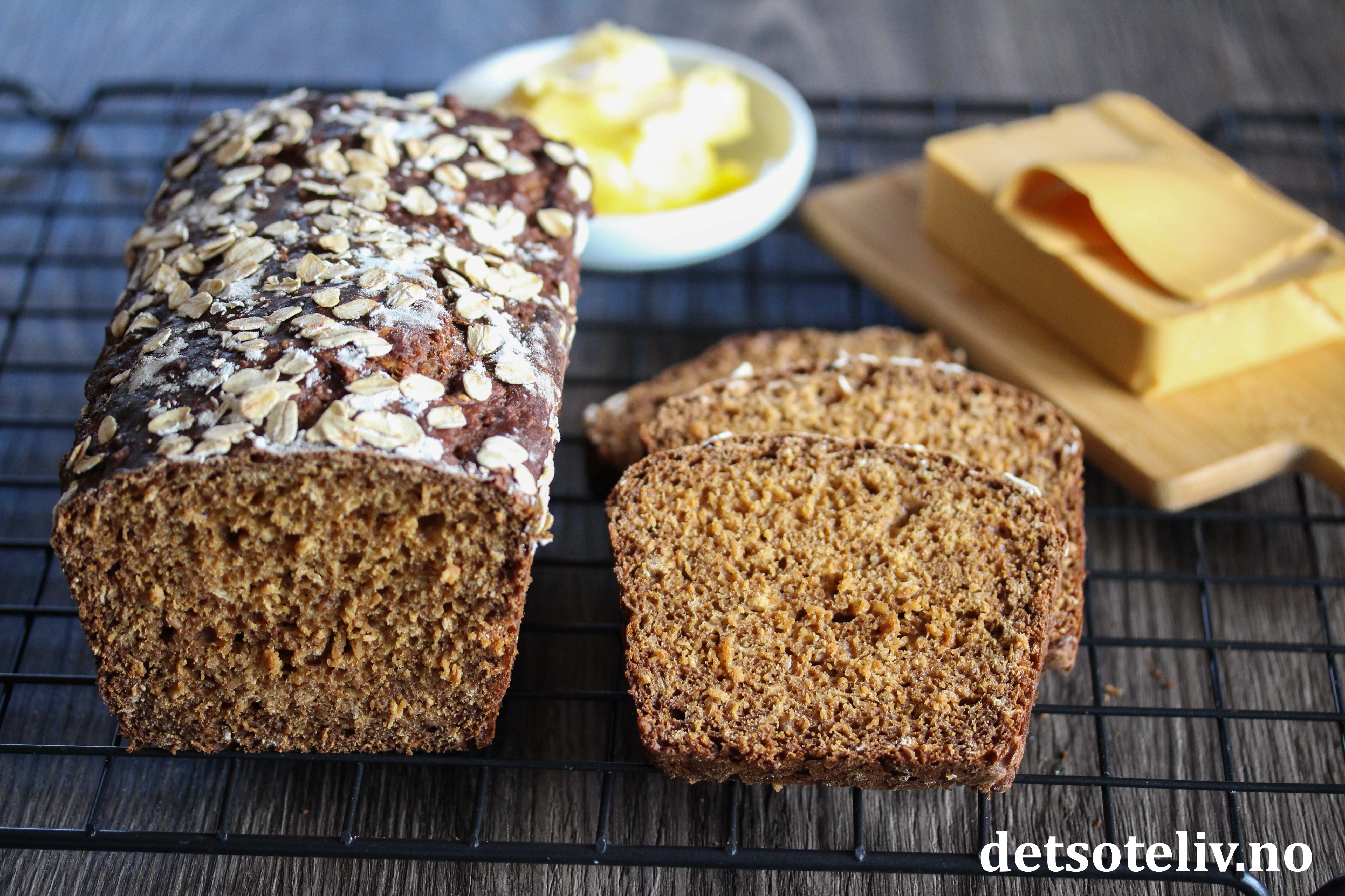 Her har jeg for eksempel laget et saftig brød med surmelk og sirup som er uten gjær.