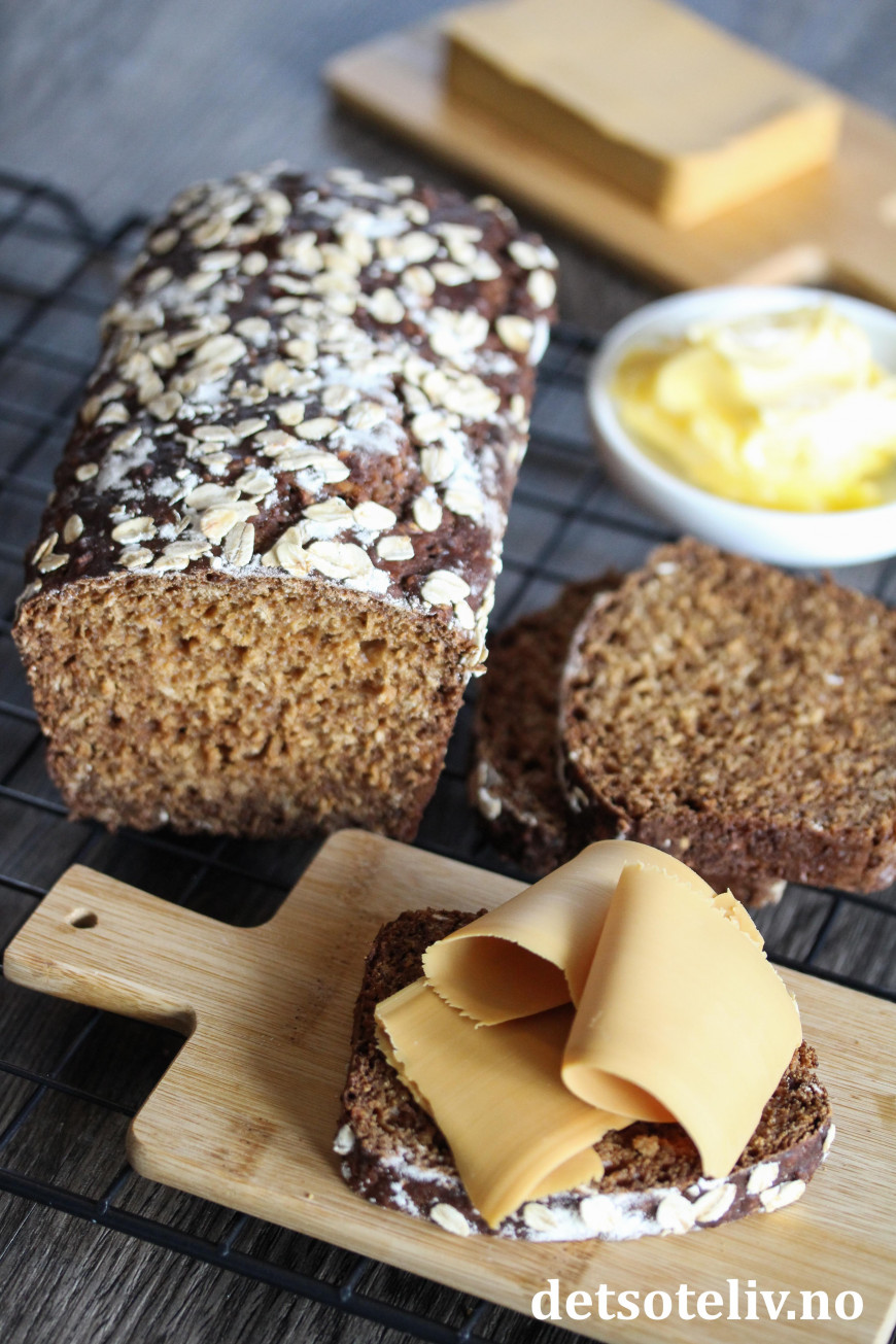 ♥ Tilpass steketiden slik at brødet blir helt gjennomstekt, men ikke overstekt så brødet blir tørt. Steketiden vil variere litt med hvilken type brødform du bruker. Dersom du synes at brødet blir for mørkt på toppen før det er gjennomstekt, kan du dekke over det med et stykke bakepapir på slutten av steketiden.