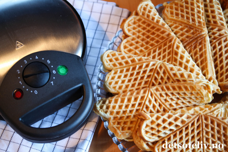 Synes dessverre dette er de værste vaflene jeg har vært borti når det kommer til å steke. Det var helt umulig. Måtte nærmest kremere de for å få de til å løsne og bli «fine».