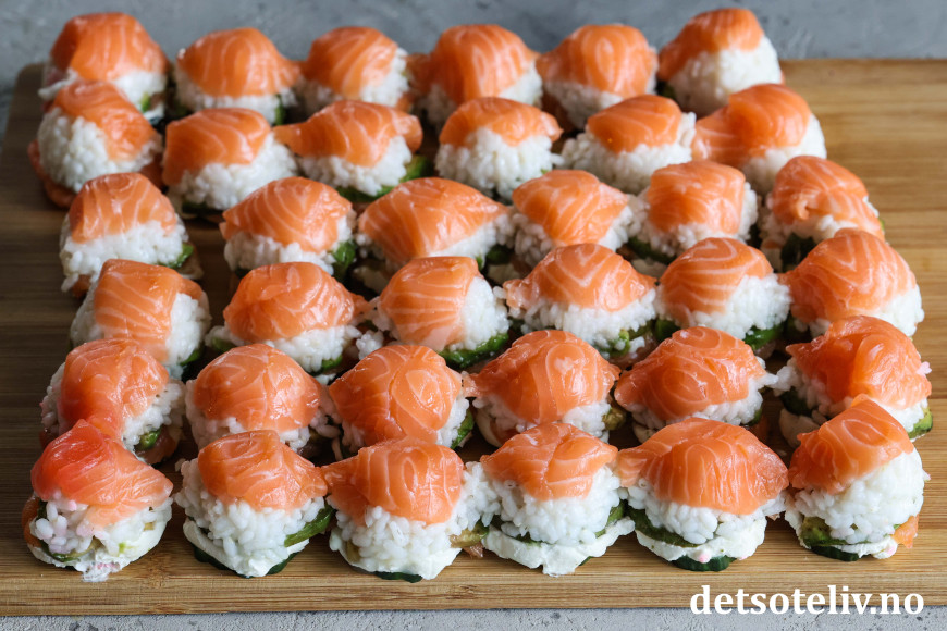 Sushibitene blir nokså store og mettende, så 36 stk passer fint å lage dersom du har et par gjester på besøk. 😊