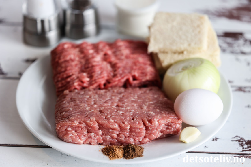 Basisen i kjøttbollene er en kombinasjon av kvernet storfekjøtt og svinekjøtt.