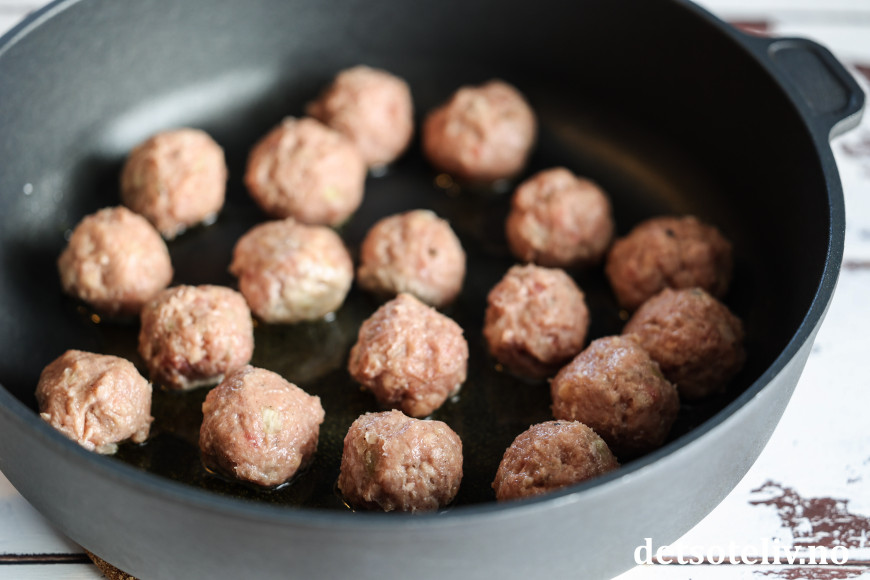 Brun kjøttbollene i stekepanne med smør og/eller olje.