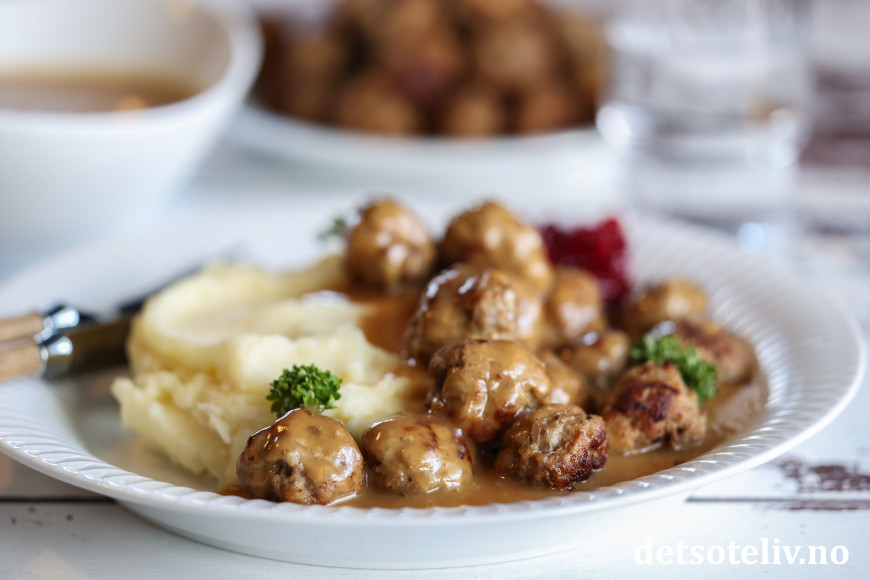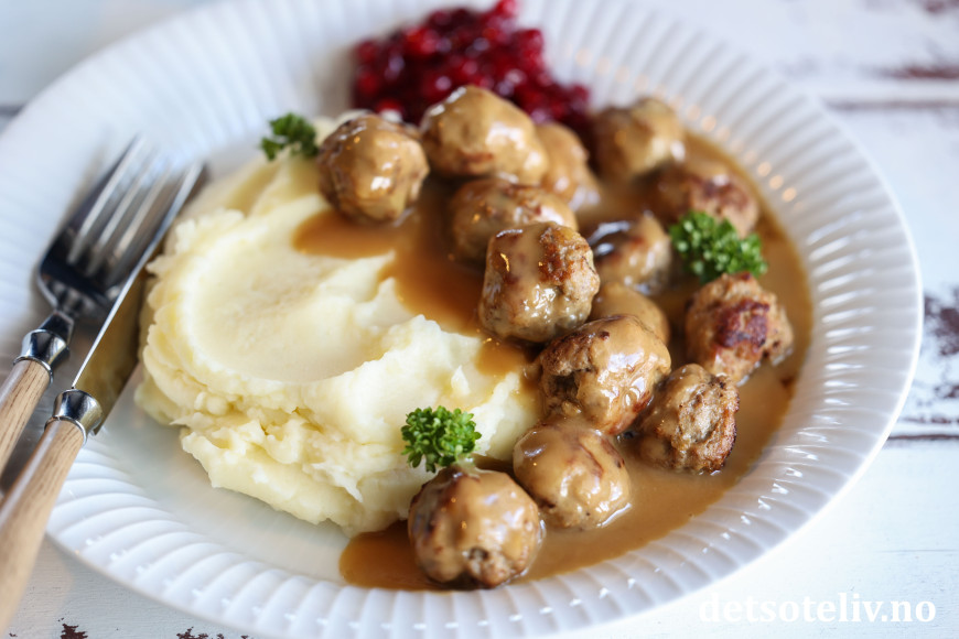 Nå kan du lage svenske kjøttboller à la IKEA hjemme hos deg selv. Jeg har gjort noen små tilpasninger, men du finner originaloppskriften til IKEA i tipsfeltet nedenfor.