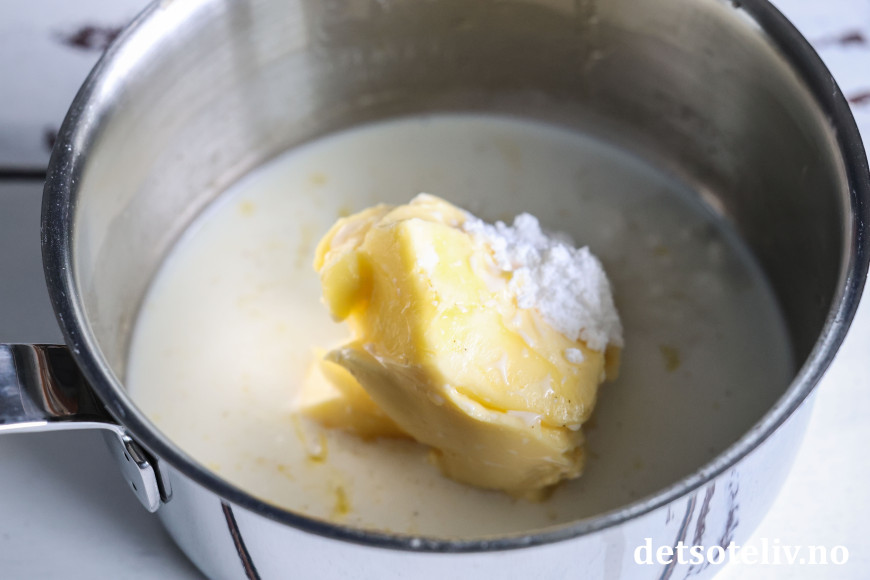 Ha smør, melis og vaniljesukker i en kjele.