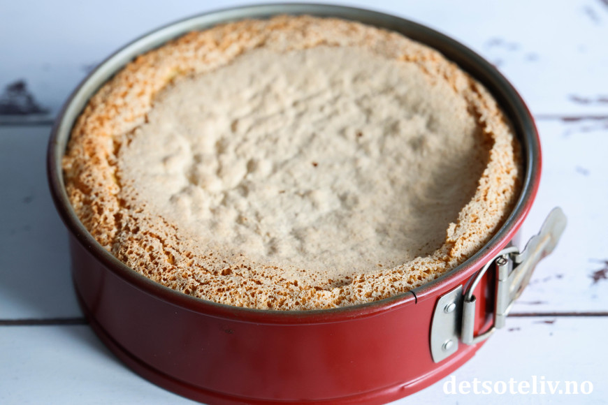 ♥ For at sukkerbrødsbunnen skal blir høy og luftig, er det viktig at du rører hvetemelet veldig forsiktig inn i deigen. Jeg liker å bruke en ballongvisp, for da forsvinner melklumpene veldig raskt med lite røring. Merk at det er mer sukker i denne sukkerbrødsbunnen enn i et vanlig sukkerbrød (se HER). Dette gir kaken litt seigere kanter og søtere smak, hvilket er meningen.