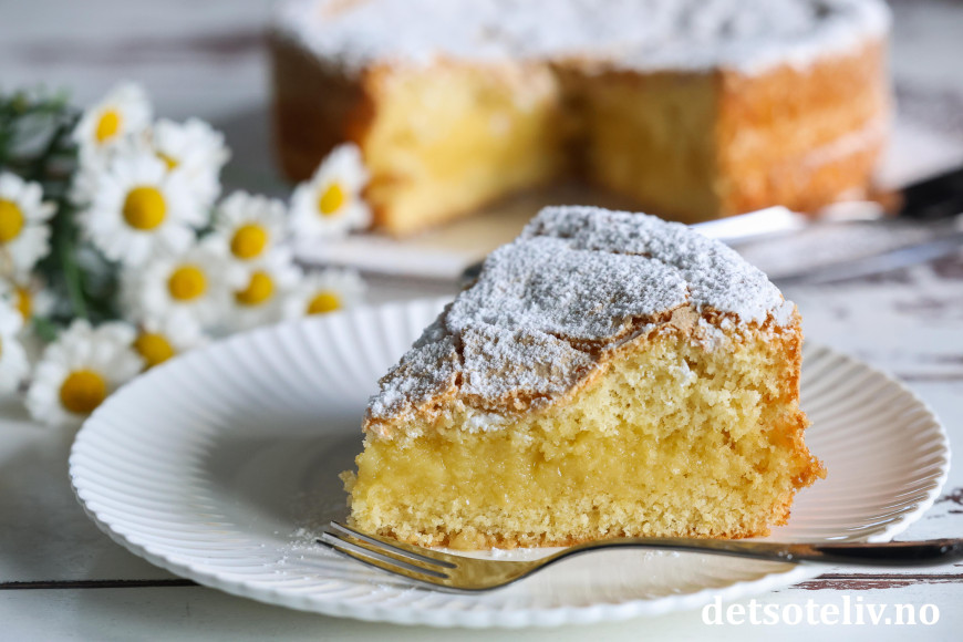 Dette er en myk og luftig sukkerbrødsbunn som fylles med et nydelig smør- og vaniljefyll. Dette fyllet kjennetegnes av at det skal være varmt og flytende når det brukes til å dynke innsiden av kakebunnene, hvilket gjør at fyllet synker inn i kakebunnene og gjør dem saftige. Ved avkjøling blir fyllet fastere, slik at du får en kake med en bløt kjerne der fyll og kake går litt over i hverandre.