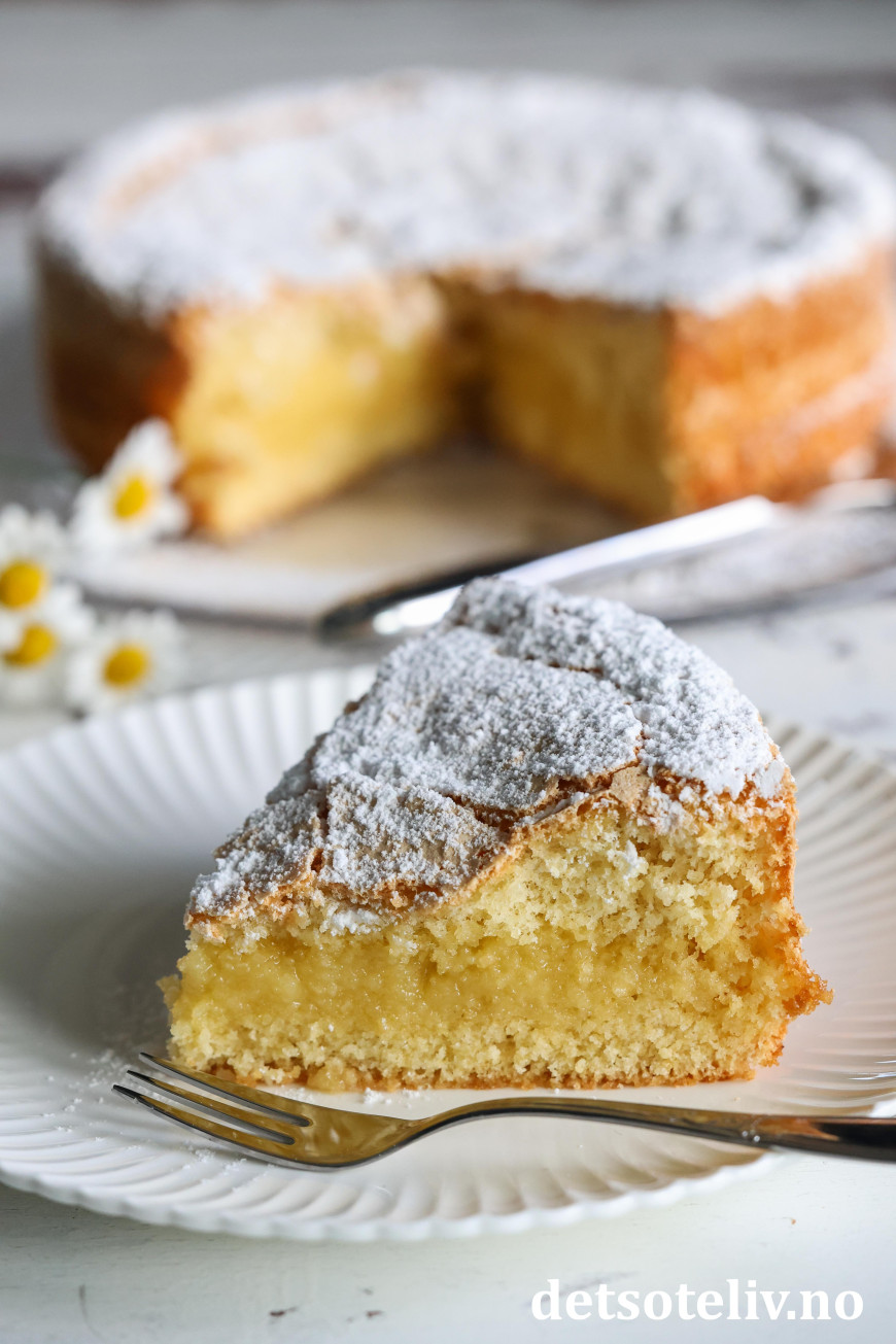 ♥ Kaken kan gjerne stå og trekke i noen timer i kjøleskapet før servering.