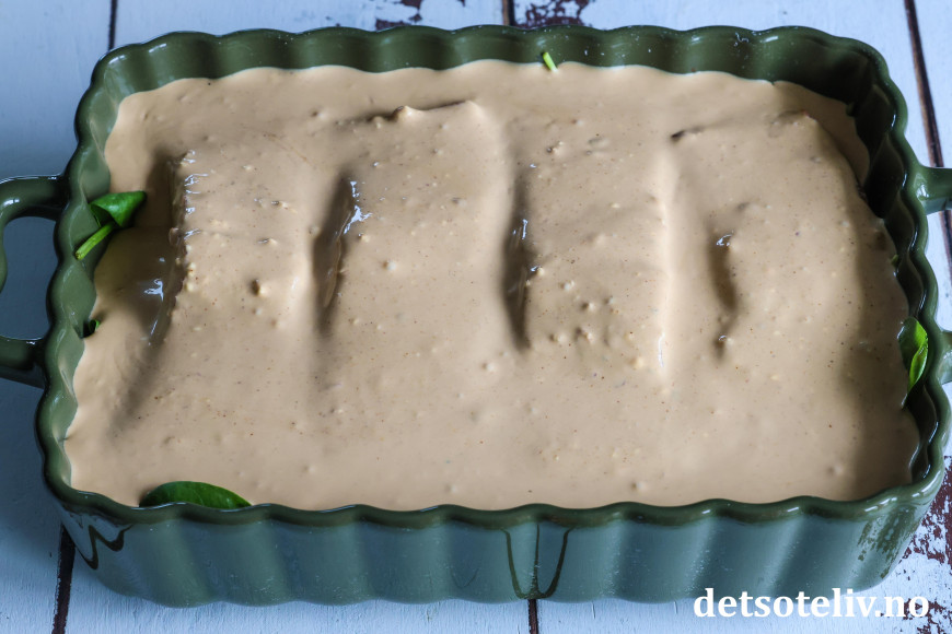 Sett formen midt i ovnen ved 200°C i 20–25 minutter.