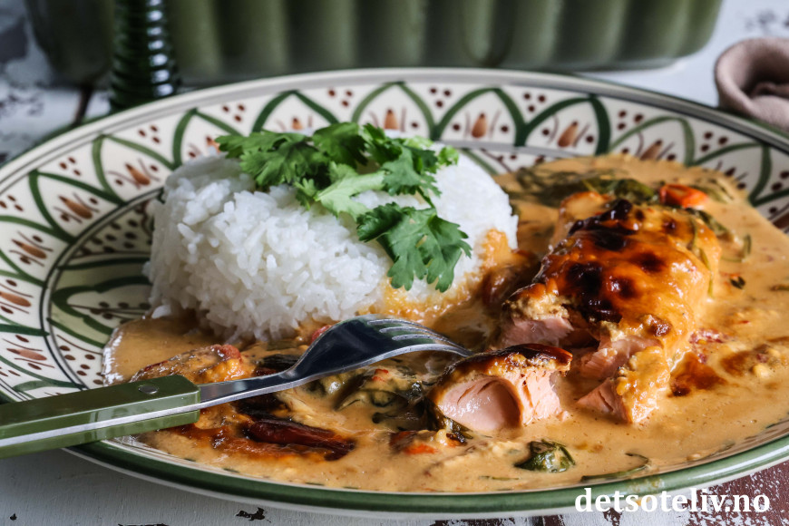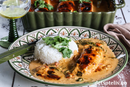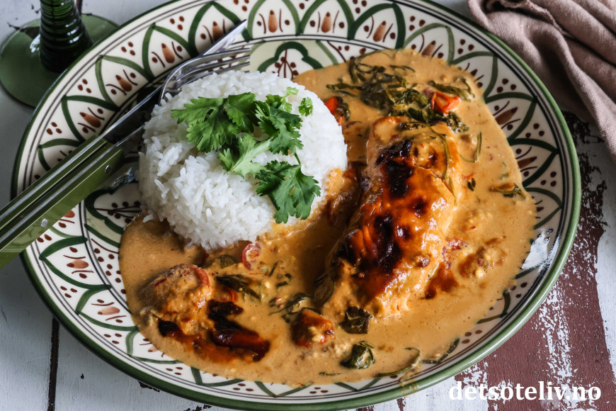 Serveres gjerne med kokt jasminris og frisk koriander.