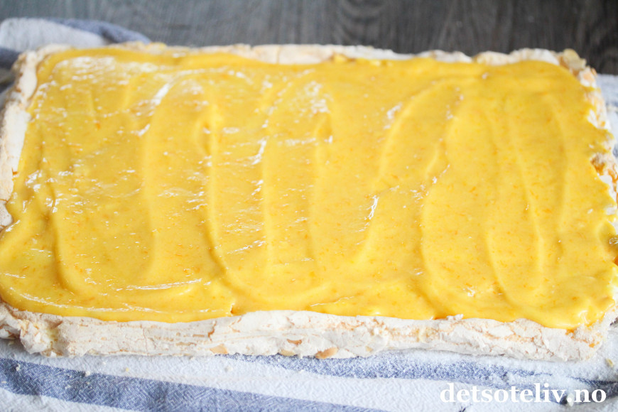 ♥ Appelsinkremen bør stå kaldt over natten for at den skal få tykk nok konsistens. Kaken må være helt kald før du brer over fyllet, hvis ikke kommer appelsinkremen til å smelte og bli rennende.