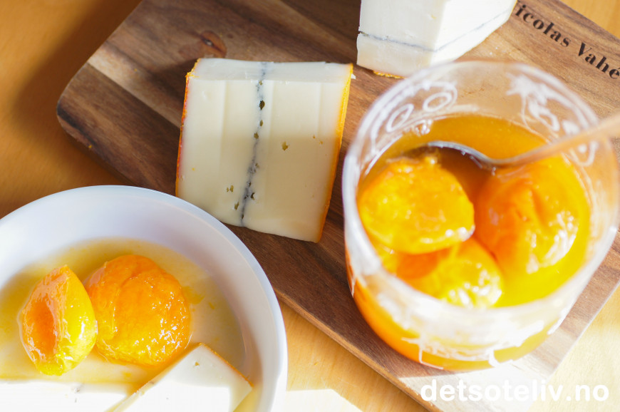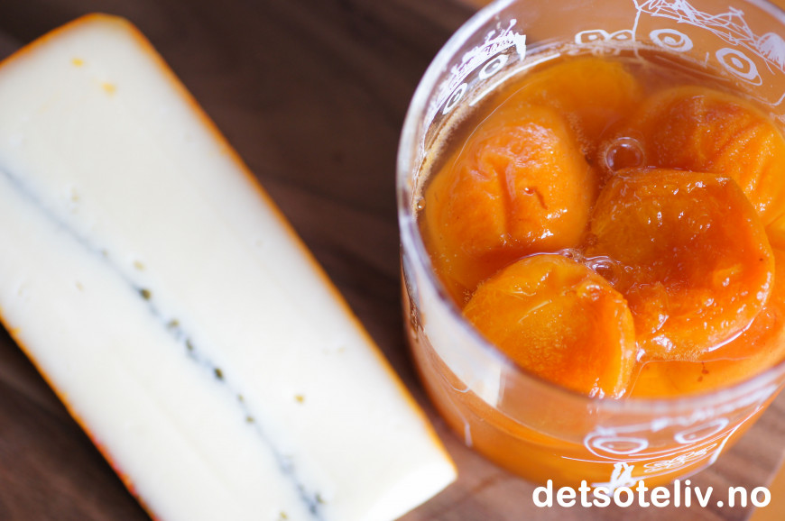 Gode oster med godt tilbehør er noe av det beste jeg vet, og her har jeg servert Syltede aprikoser sammen med den nydelige og nokså milde osten Royal Morbier.