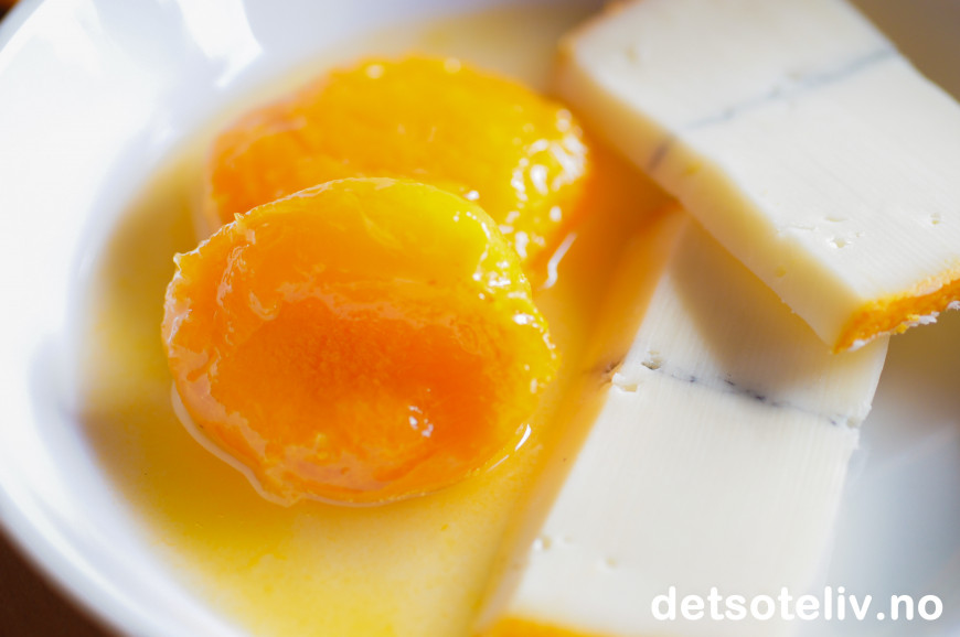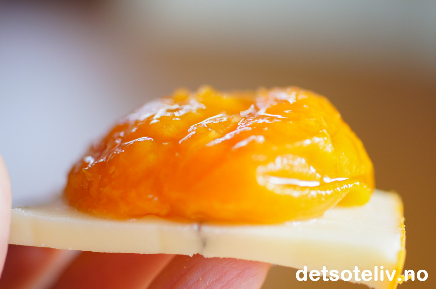 Osten har nokså mild smak, som passer veldig godt sammen med de søte aprikosene.