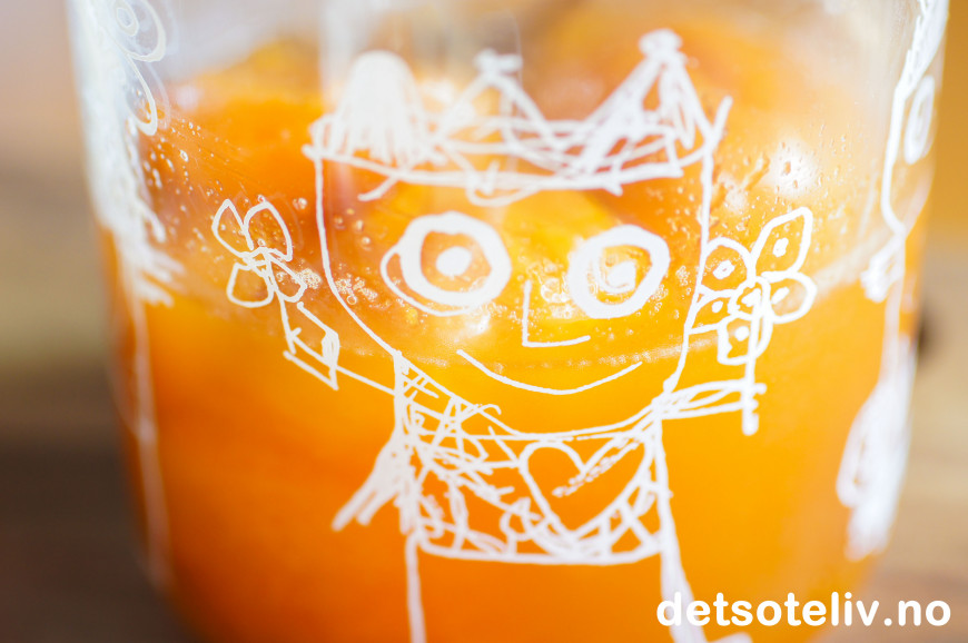 ♥ Glasset med de syltede aprikosene holder seg gode i flere dager i kjøleskapet.