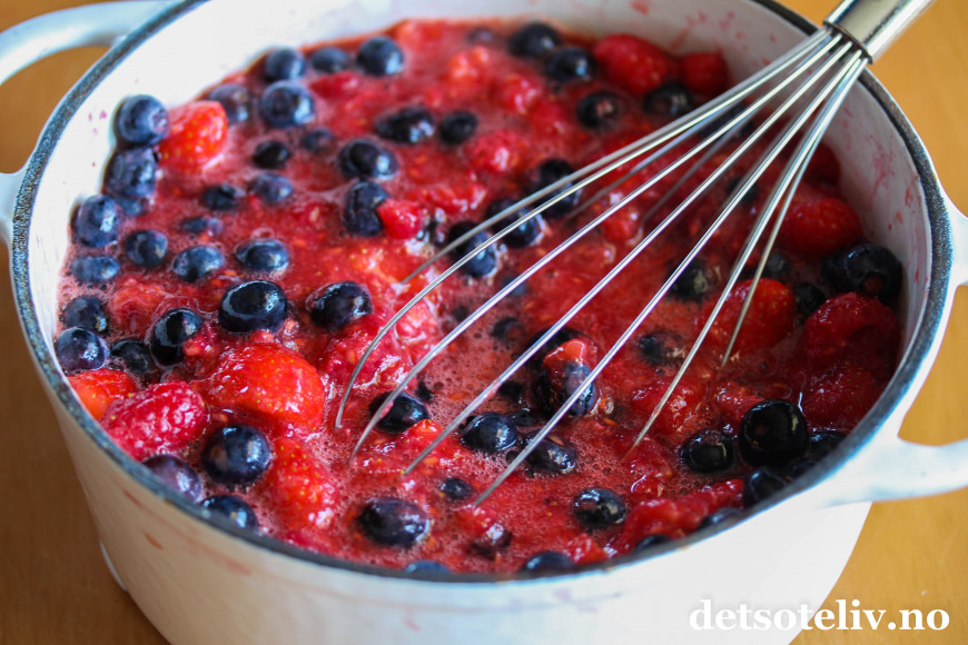 Her har jeg brukt en herlig miks av jordbær, blåbær og bringebær og laget et nydelig sommersyltetøy.