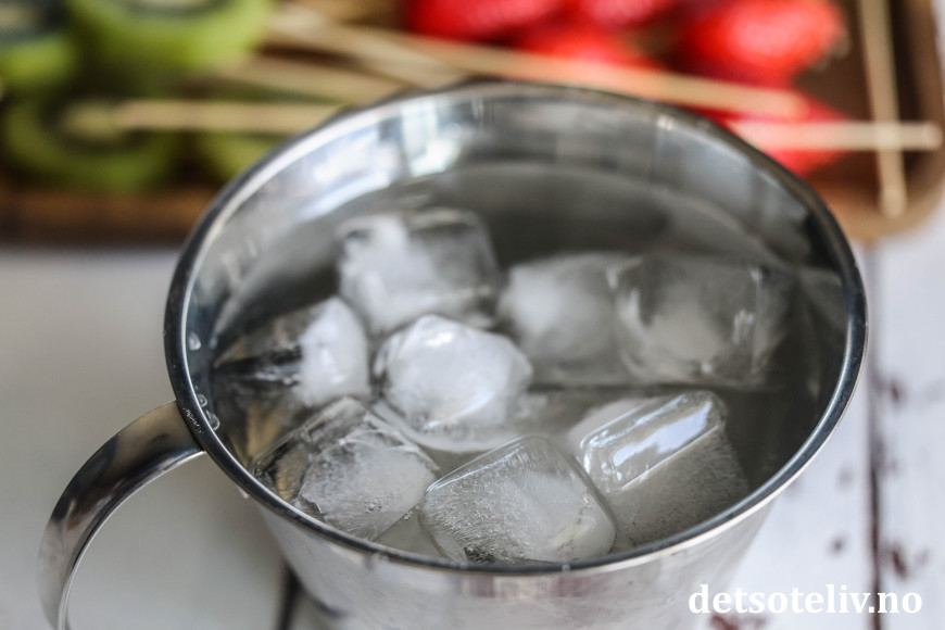 Mens sukkerlaken koker, kan du lage klar en bolle med isvann.