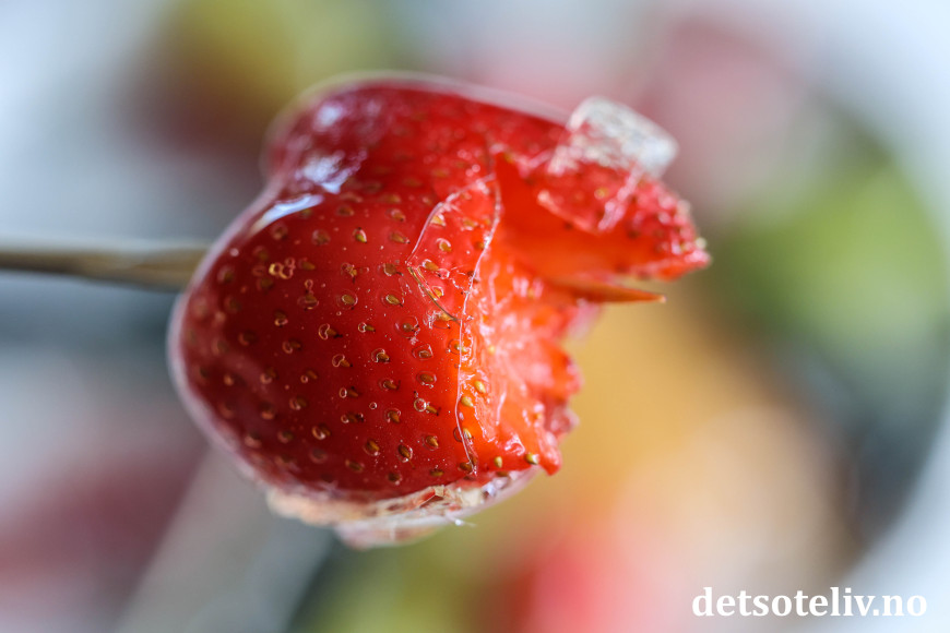 Jeg har testet det, og ja, frisk frukt og bær med knasende sukkerglasur er absolutt veldig godt! 😍 Se også Kandiserte epler (Røde, sukkerglaserte epler) som vi har lange tradisjoner for å lage i Norge.