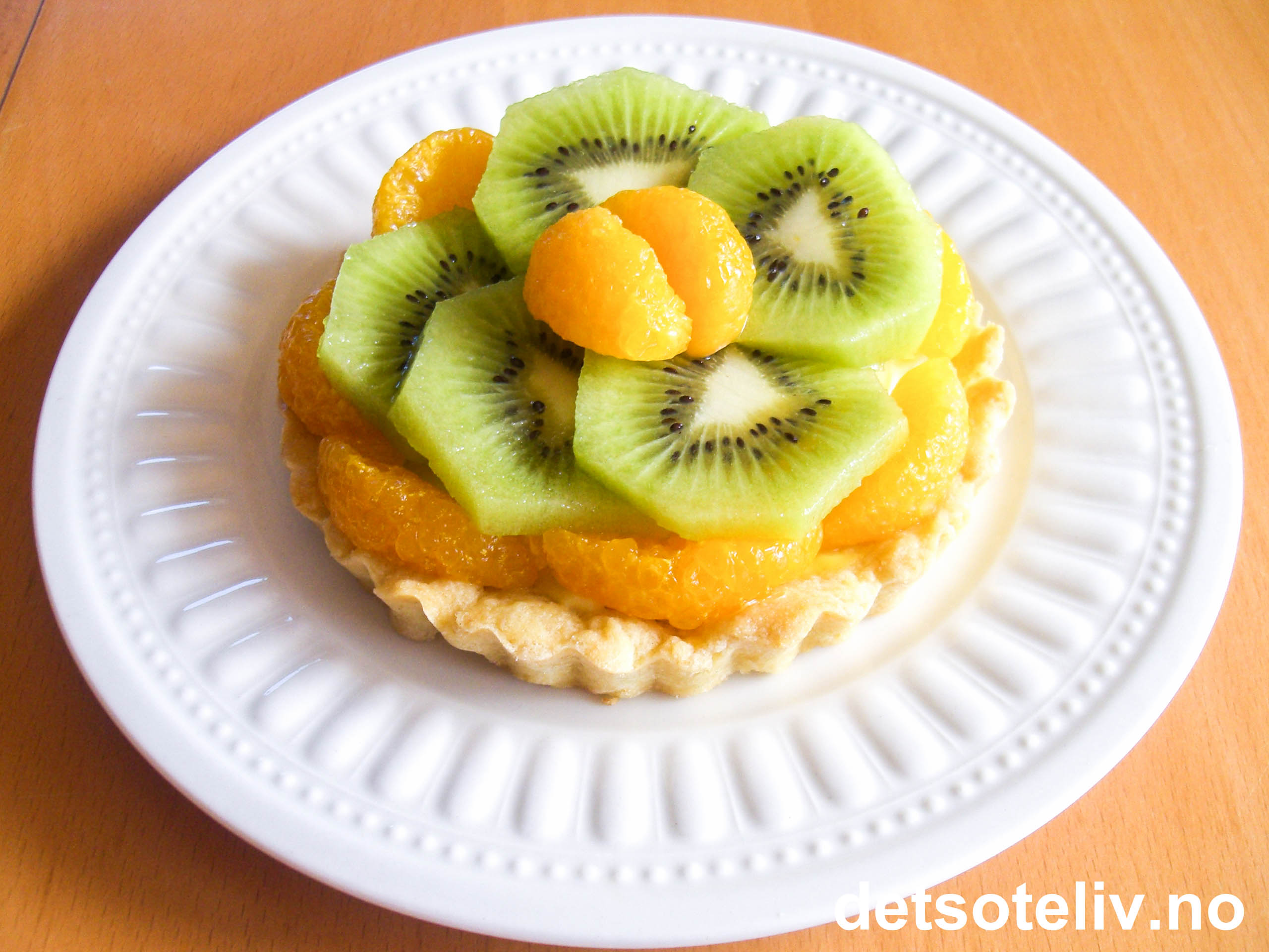 Kiwi og mandariner kan for eksempel byttes ut med friske bringebær, jordbær, blåbær, mango, moreller, osv... Se eksempelvis "Tarteletter med moreller" og "Jordbærtarteletter".