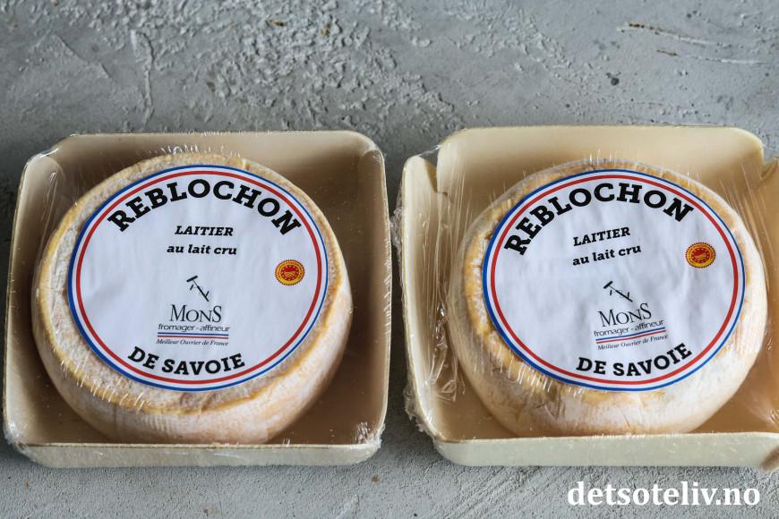 ♥ Reblochon er sjelden å finne i vanlige, norske matbutikker, men fås typisk kjøpt i delikatesseforretninger og matbutikker/matmarkeder som har ostedisk med godt utvalg. Reblochon er en rødkittost, men som får et tynt lag hvitmugg på skorpen under modning. Osten har en bløt kjerne og smelter godt, og den kraftige smaken gjør at osten passer veldig godt til gratenger og ostesmørbrød. Jeg har hørt at den norske osten Munkeby kan ligne litt på fransk Reblochon. Det er også mulig å bruke Brie, selv om smaken da blir litt annerledes og mildere.