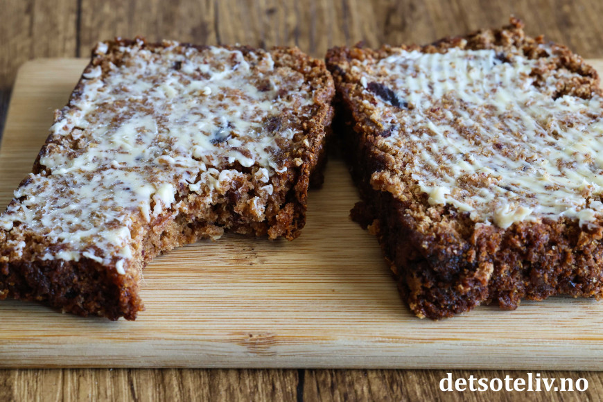 Kaken er sunn og er ikke tilsatt noe fett. Likevel er den veldig myk og holder seg saftig lenge. Den er også fin å fryse.