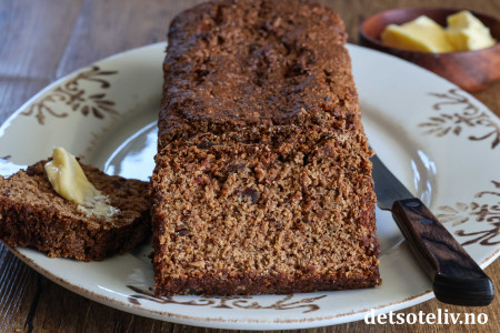 Denne kaken ble kåret som "Lesernes beste" i et Hjemmet blad for en stund siden. Kaken inneholder nytrukket te, hakkede dadler, brunt sukker, kanel og grovt mel. Dette gir kaken en deilig og litt spesiell smak.