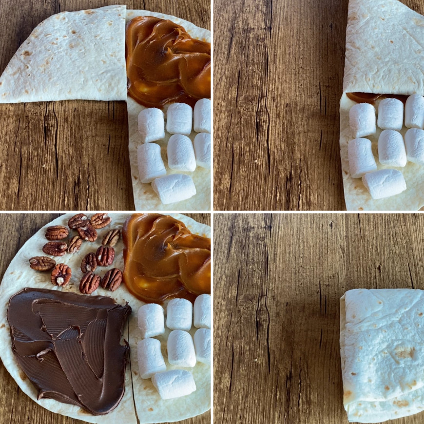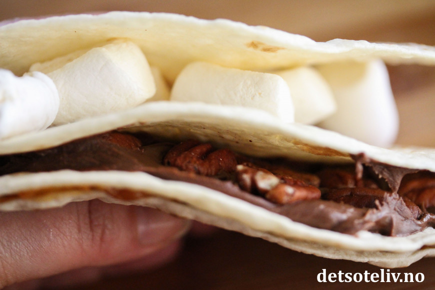 Marshmallows smelter ved oppvarming som gjør at den ferdigstekte tortilla-wrap'en holder godt sammen.