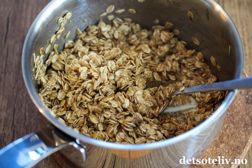 Først stekte havregryn.