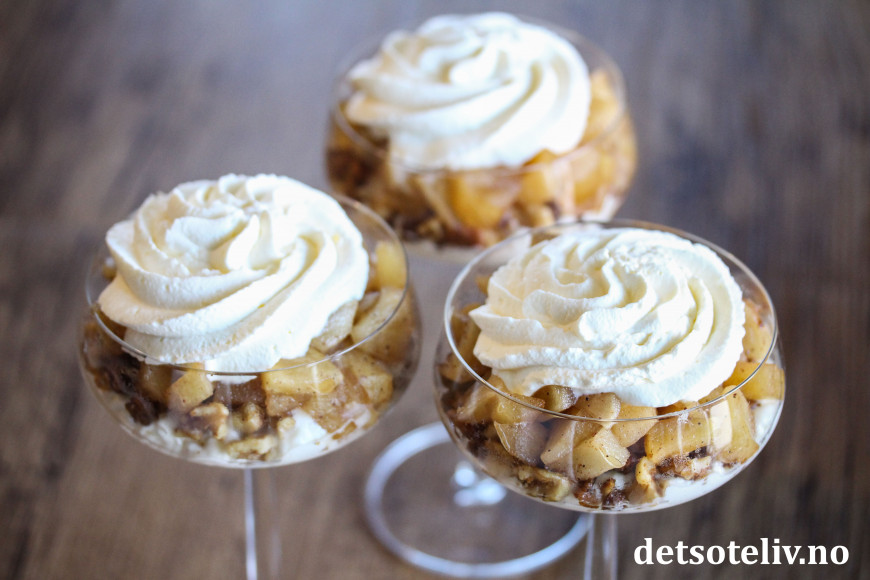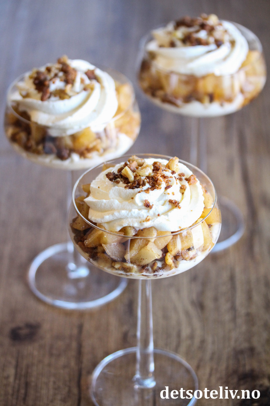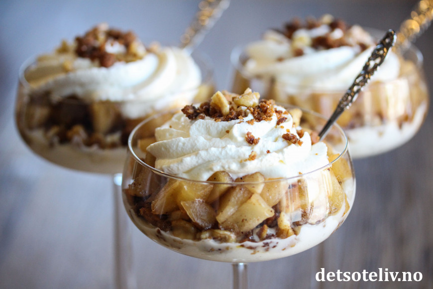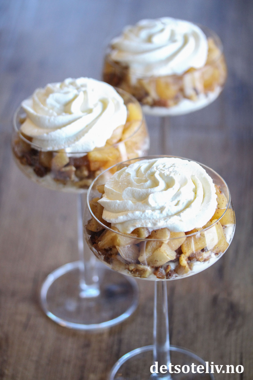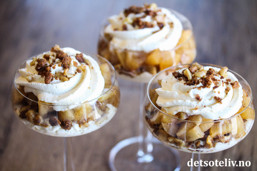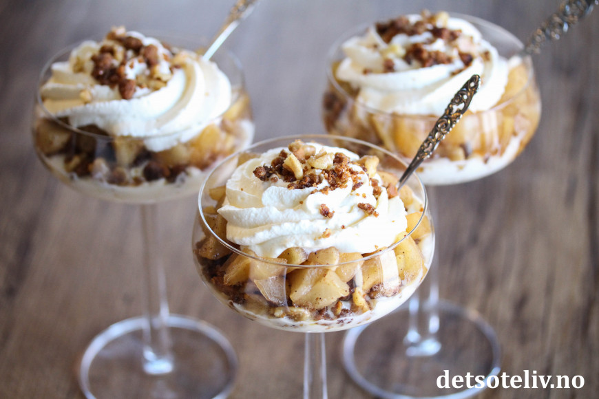 Deilig, lettvint juledessert med epler, pepperkaker og fløtekrem!