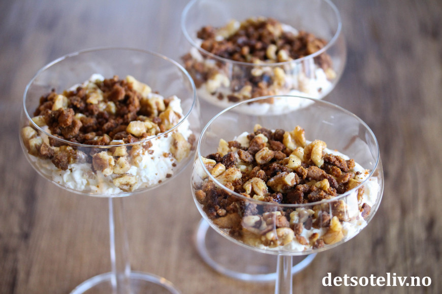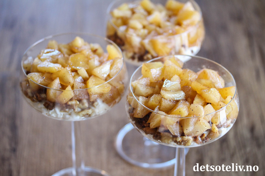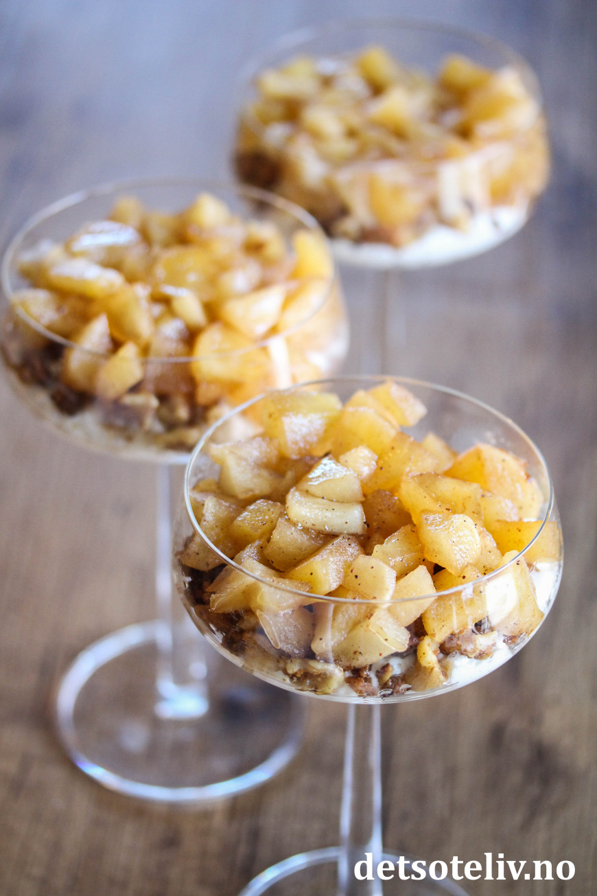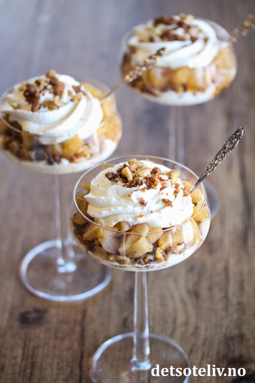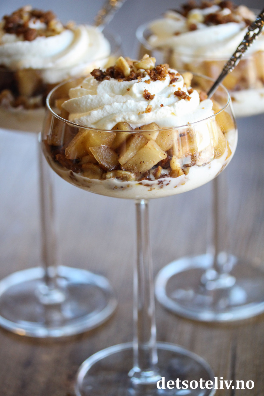 Deilig, lettvint juledessert med epler, pepperkaker og fløtekrem!
