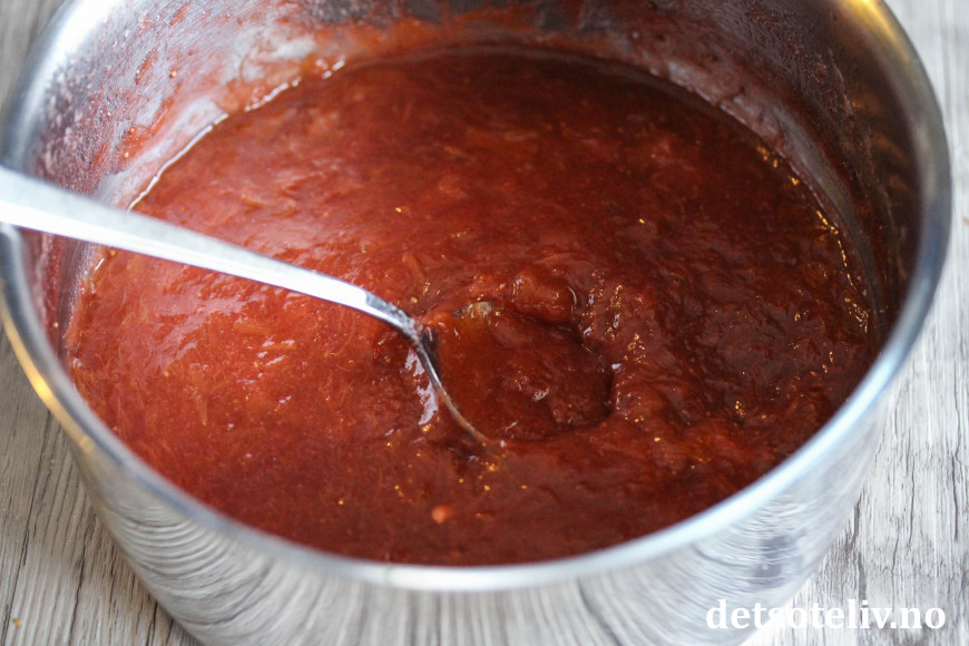 ♥ Du kan droppe maisenna-jevningen, men da blir rabarbrakompotten litt mer tyntflytende.