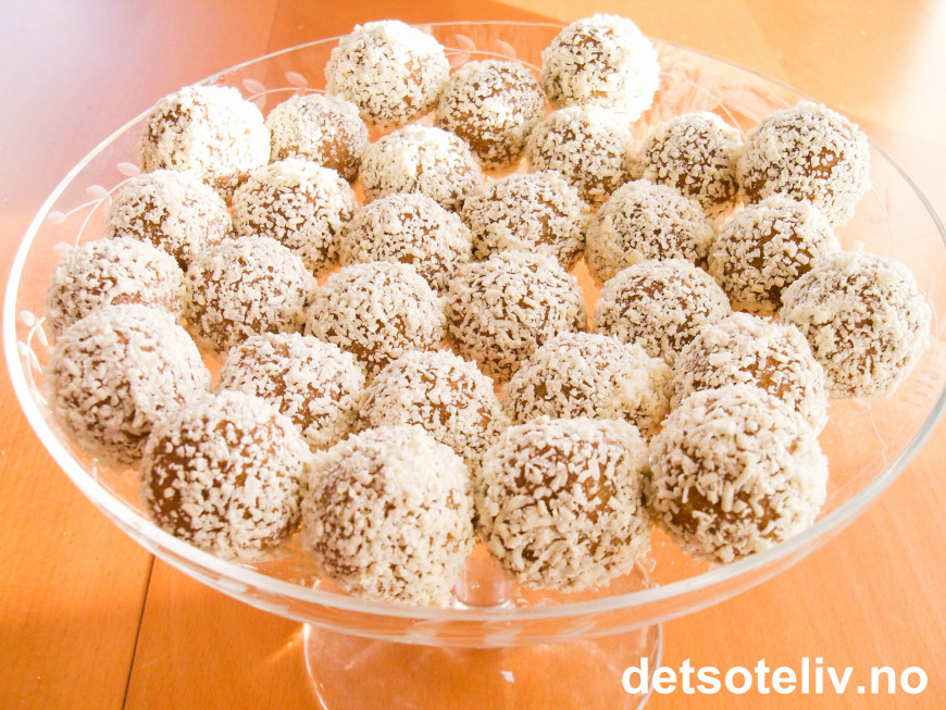 Det er viktig at konfektkulene oppbevares kjølig, ellers vil den hvite sjokoladepynten smelte og bli klissete.