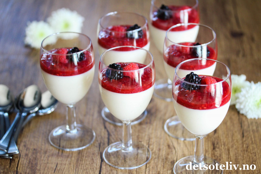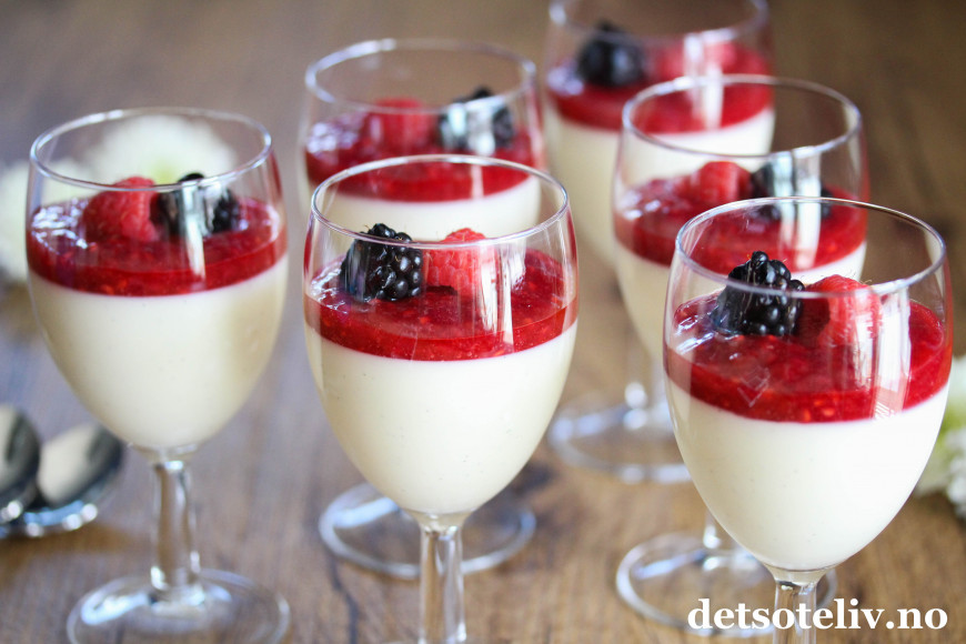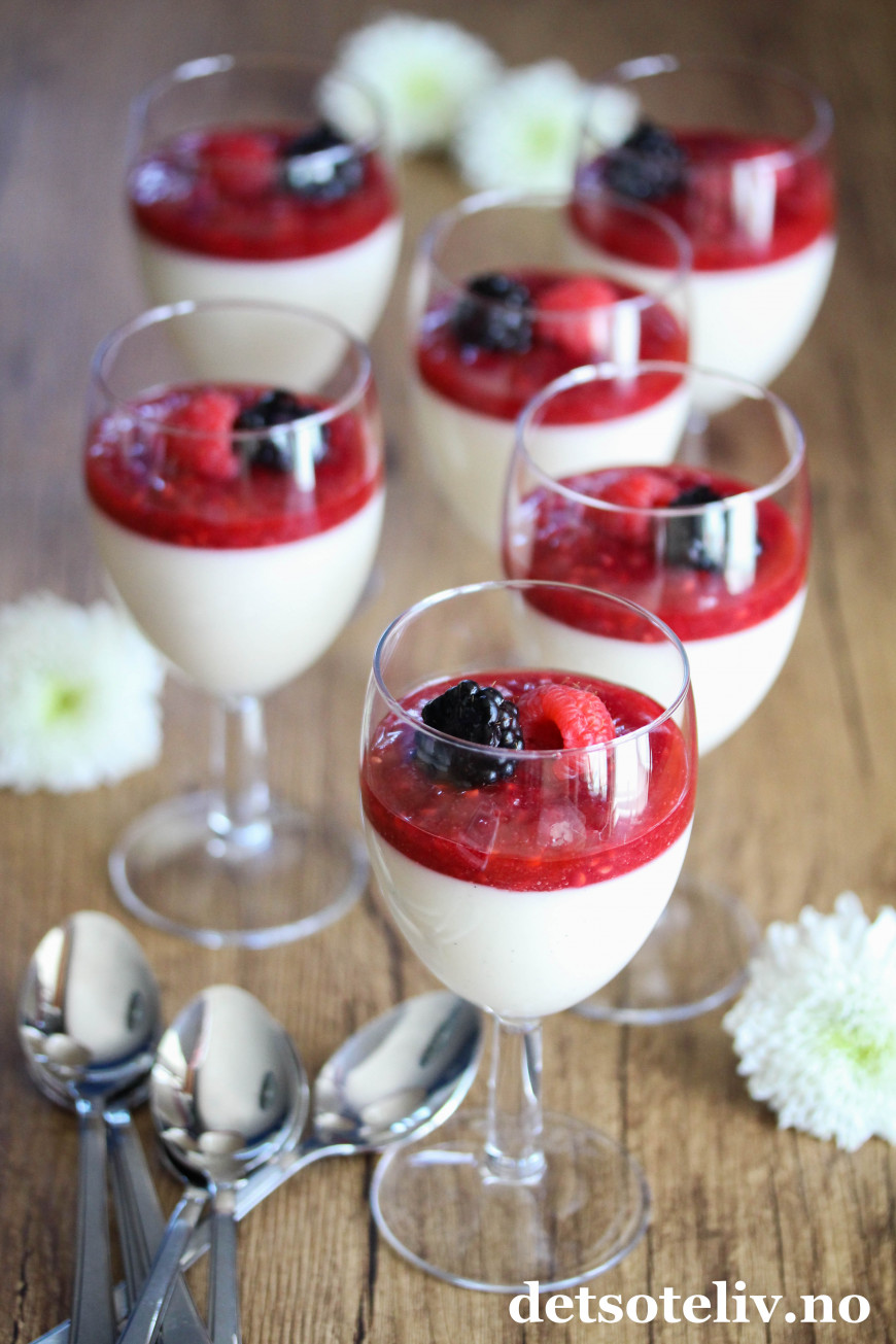 ♥ Du kan gjerne lage klar Tjukkmjølkspuddingen dagen før servering og oppbevare i kjøleskapet. Bør imidlertid pyntes med bringebærsaus og friske bær på serveringsdagen.