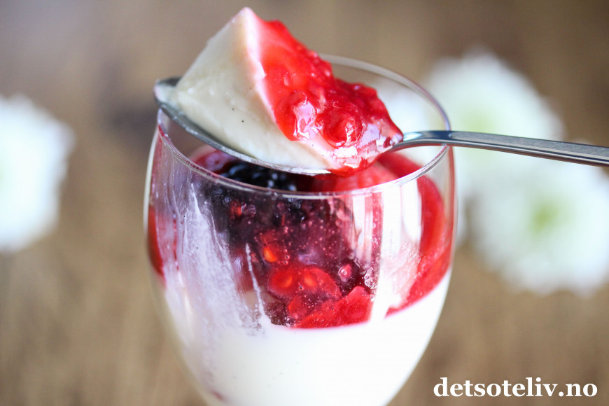Du får kjøpt økologisk tjukkmjølk fra Røros i de fleste norske matbutikkene, og jeg anbefaler deg å teste ut. Melken er tykk, syrnet og sunn og gir en fin spiss på denne desserten, som blir ekstra god med hjemmelaget bringebærsaus og friske bær.