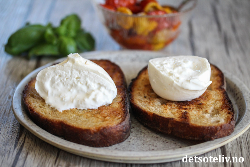 Se også Crostini med stracciatella og ovnsbakte tomater.