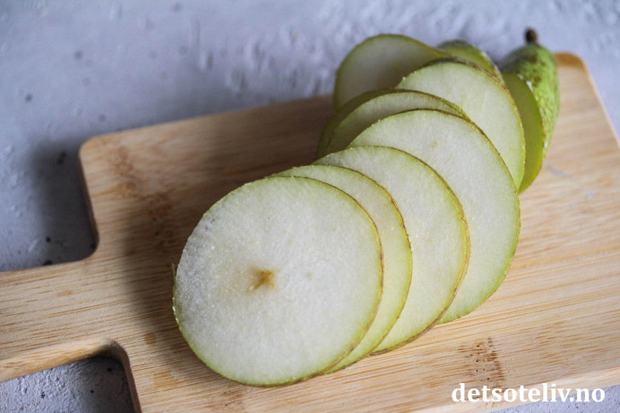 Skjær pæren i skiver.