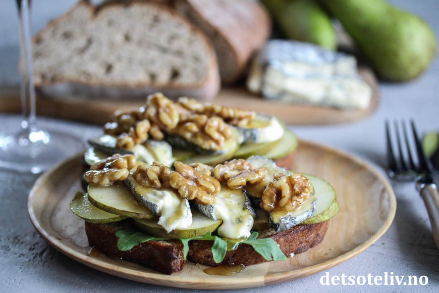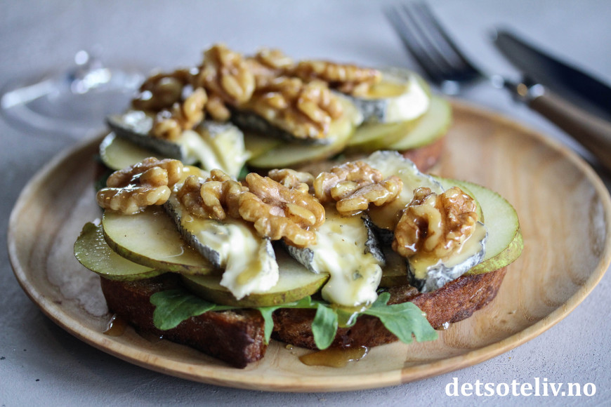♥ Se også Ostesmørbrød med pære og blåmuggost.