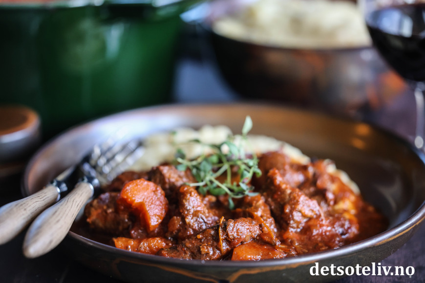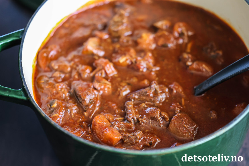 På mørke novemberdager er det herlig med en fyldig og smaksrik kjøttgryte som står og putrer i et par timer på ovnen! 😍
