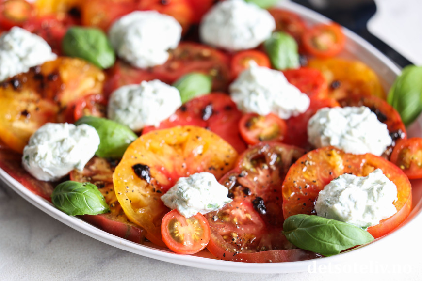 Tomatsalaten er kjempegod å servere sammen med varme hvitløksbrød. 😍