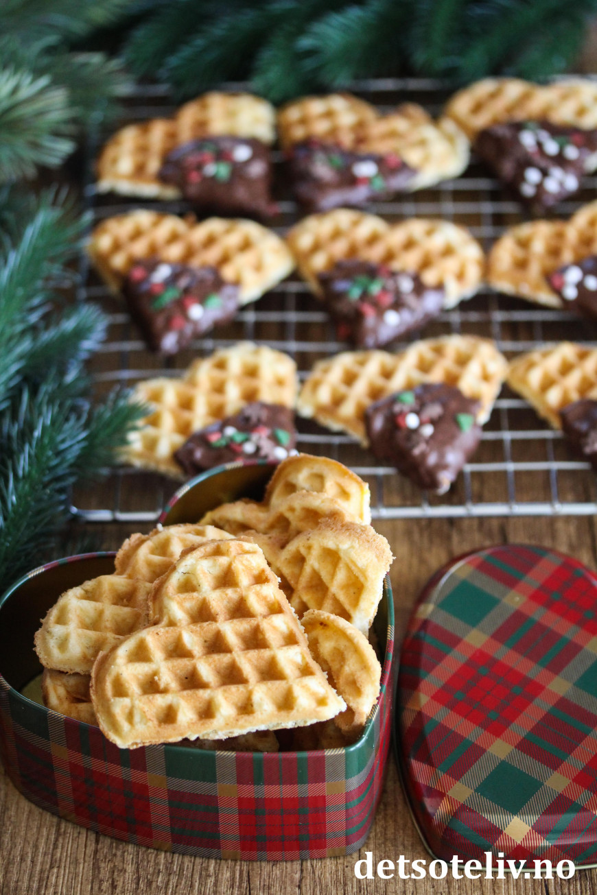 Prøvde disse til noe jeg kan ta inn på jobb til 17. Mai, da jeg bor i utlandet. De er kjempegode, og en ny favoritt. Fikk ikke på langt nær like mange som oppskriften sier, men kanskje det bare er med vaffeljernet og gjøre, da jeg fikk ca 50 hjerter.