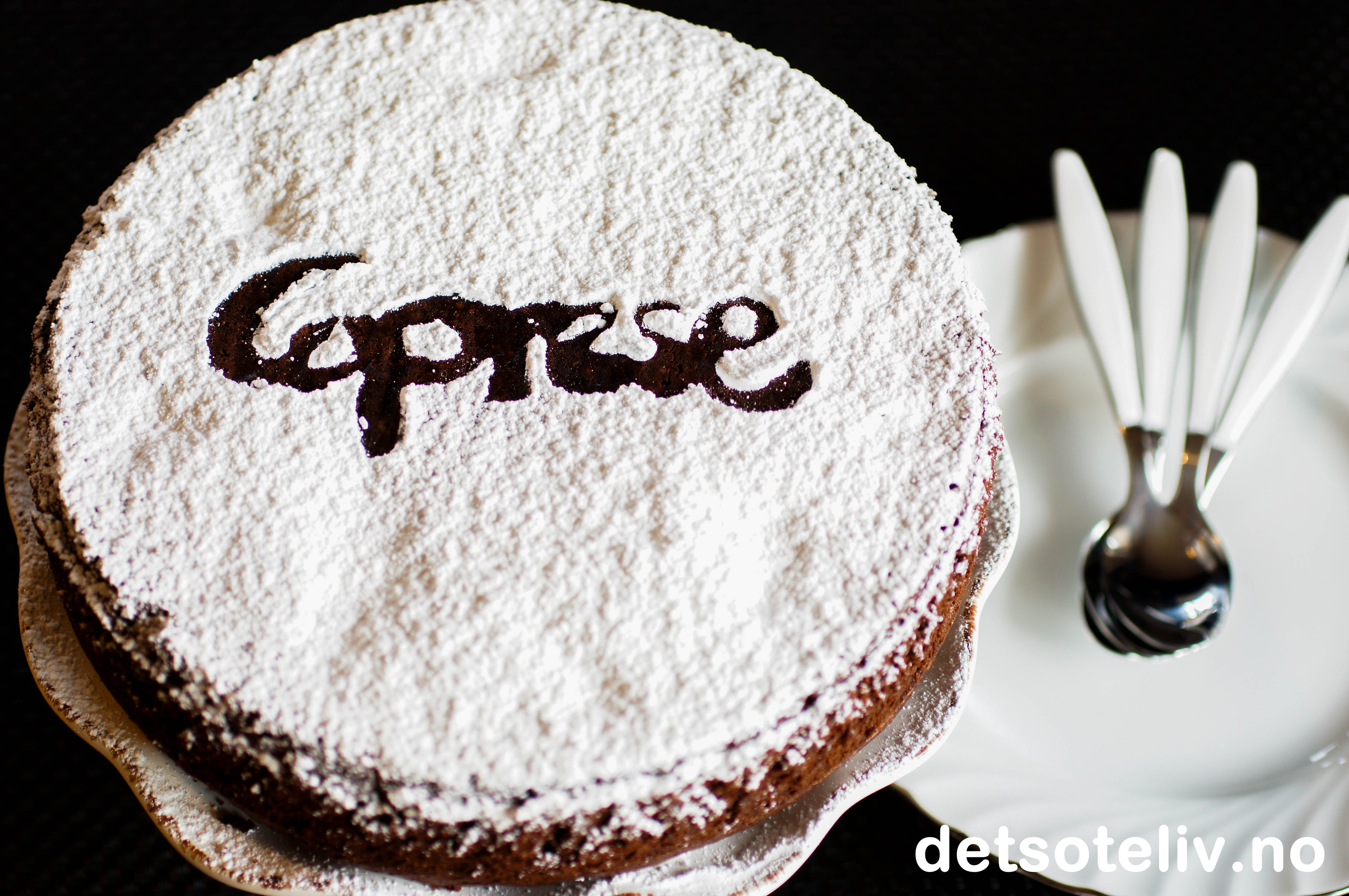"Torta Caprese" er en fantastisk konfektkake som stammer fra øya Capri utenfor den vakre Amalfikysten.