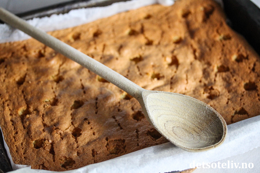 Stek kaken midt i ovnen ved 180°C i ca. 25-30 minutter, til kaken er gjennomstekt.