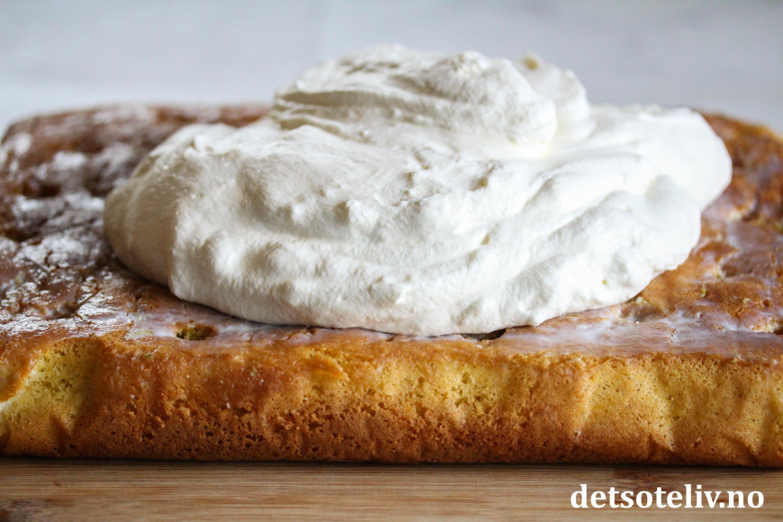 ♥ Kaken bør serveres samme dag som den dekkes med fløtekremen.