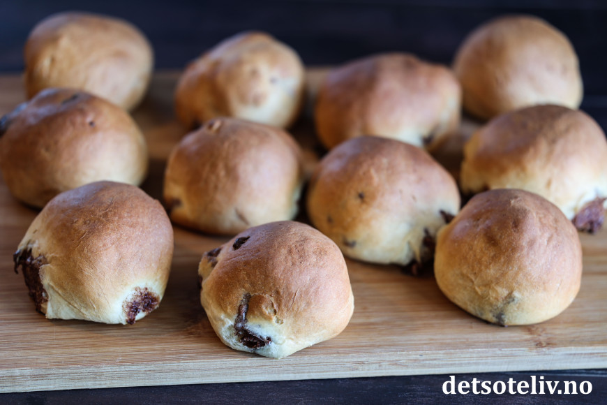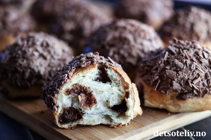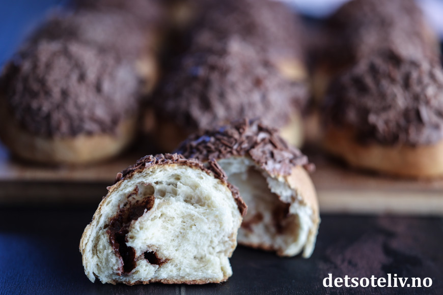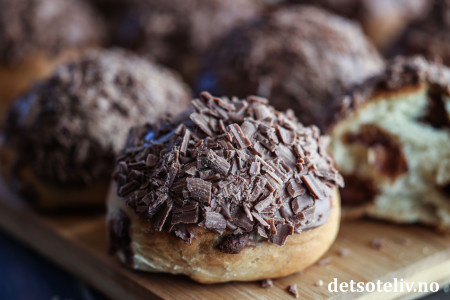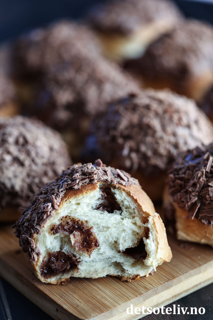 Du finner flere andre varianter av sjokoladeboller her på Det søte liv, se blant annet Boller med sjokoladebiter, Boller med sjokolade, Sjokoladehorn, Boller med vaniljekrem og sjokoladebiter og Verdens beste sjokoladeboller.