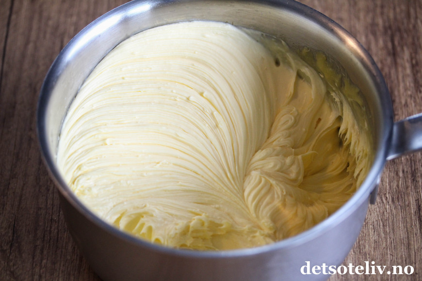 Smøret "skilte" seg fra resten, men dette løste seg ved å piske kremen litt. Uansett ble den veldig søt.