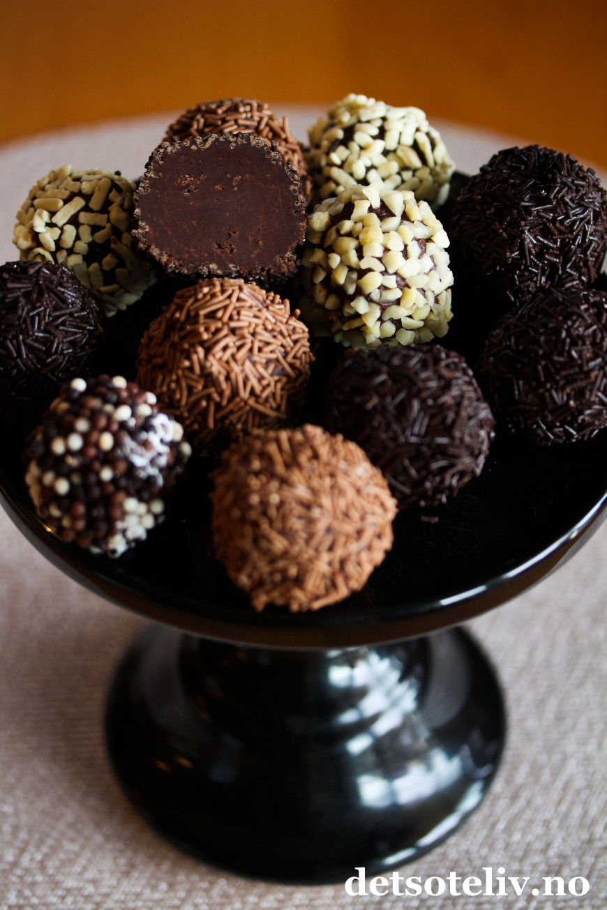 ♥ Trøffelkonfekten bør oppbevares kjølig så den ikke blir klissete.