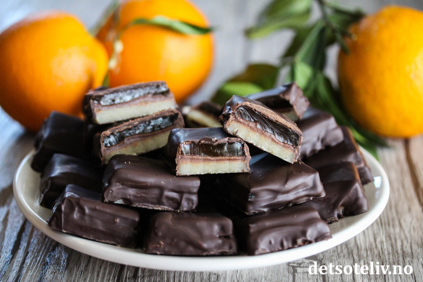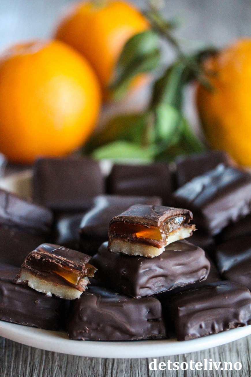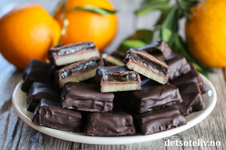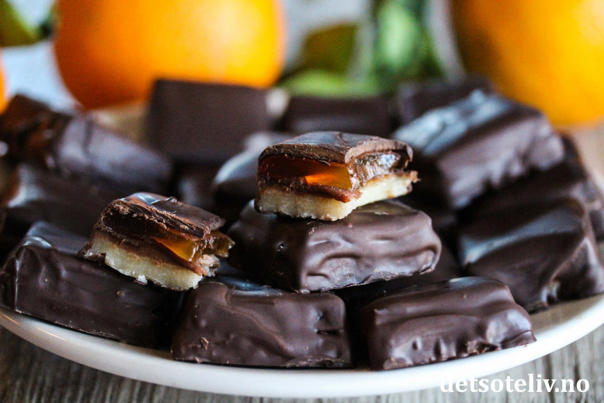 ♥ Jeg foretrekker å bruke overtrekkssjokolade til å dyppe konfekten i. Det gir finere overflate på konfekten. Overtrekkssjokolade fås blant annet kjøpt i nettbutikker som selger bakeutstyr. Alternativt kan du smelte vanlig kokesjokolade, men da lønner det seg å tilsette litt delfiafett for å få sjokoladen litt mer flytende.