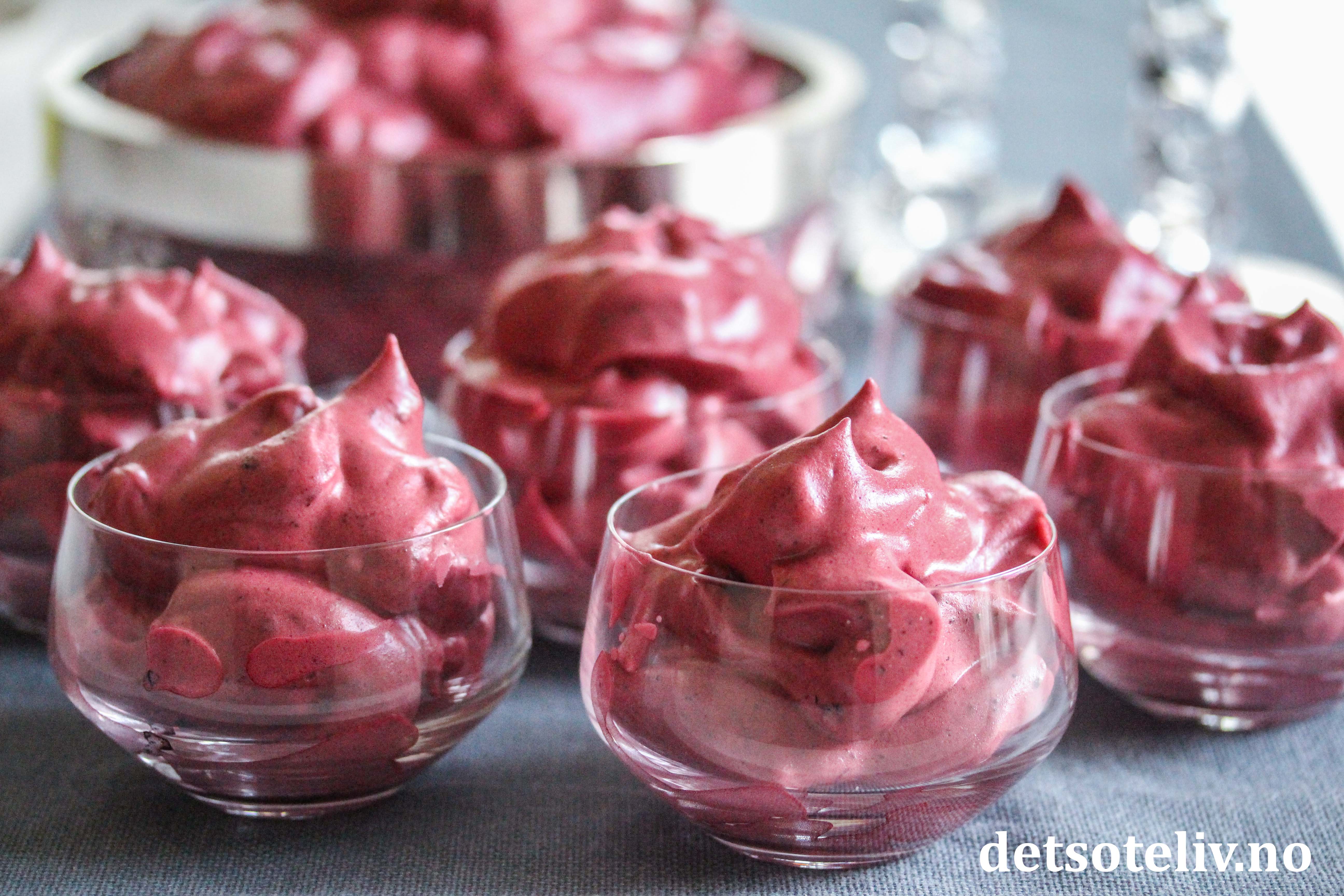 Fordel trollkremen straks i dessertglass og serveringsbolle.