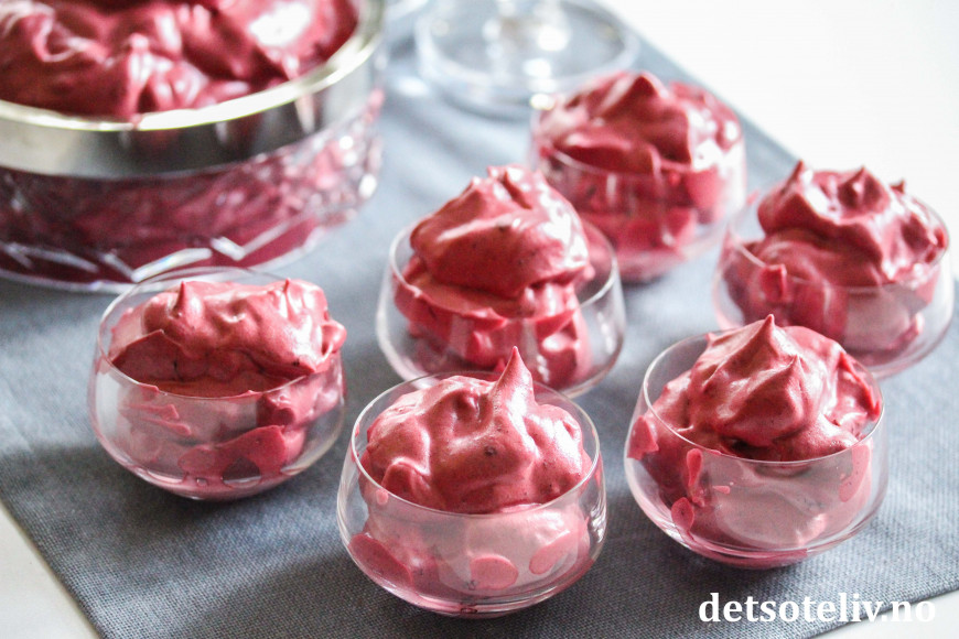 ♥ Vær forberedt på at trollkremen vokser VELDIG i volum ved piskingen! Det er virkelig fascinerende å se! Med denne porsjonen trenger du en kjøkkenmaskin med stor bolle. Trollkremen er ikke noe mektig (den består jo bare av bær, sukker og litt eggehvite), men dette kan likevel oppleves som en stor porsjon, siden det blir så mye volum. Du kan eventuelt halvere denne porsjonen hvis du vil.