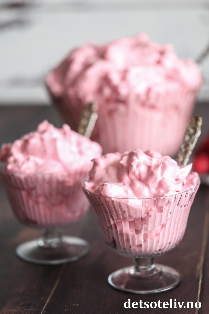 Trollkrem er en herlig dessert, som det blir mye av, selv om du bruker lite ingredienser. Det skjer rett og slett noe magisk når du pisker eggehvite, sukker og bær kjempelenge; den lille porsjonen du ser nede i bollen vokser og vokser og vokser til du har bærskum opp til randen av bollen! 😃