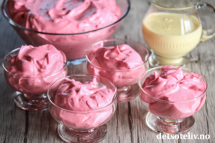 Trollkremen blir som et tykt, luftig skum med bærsmak.