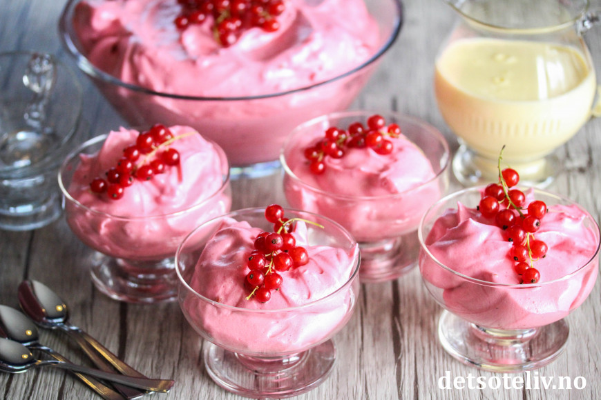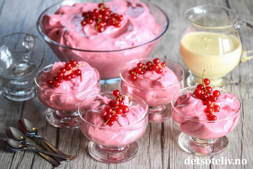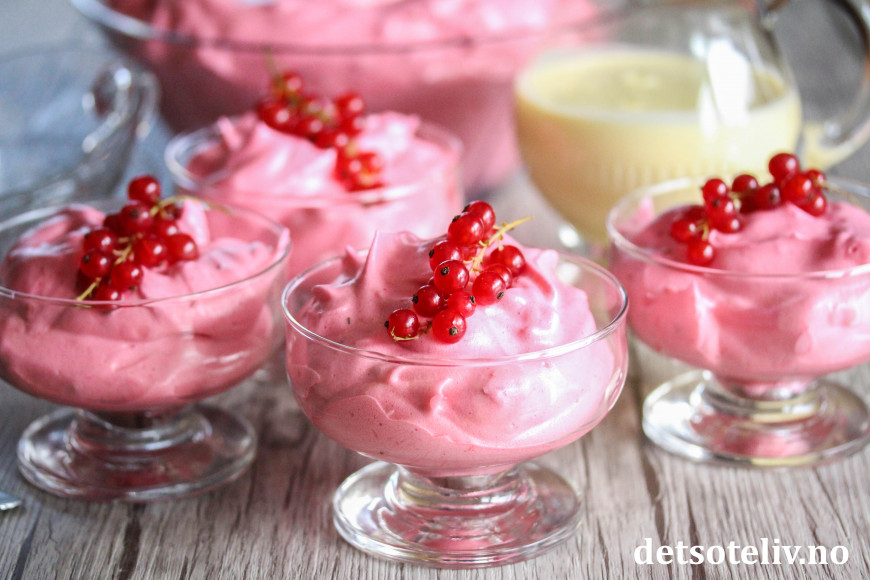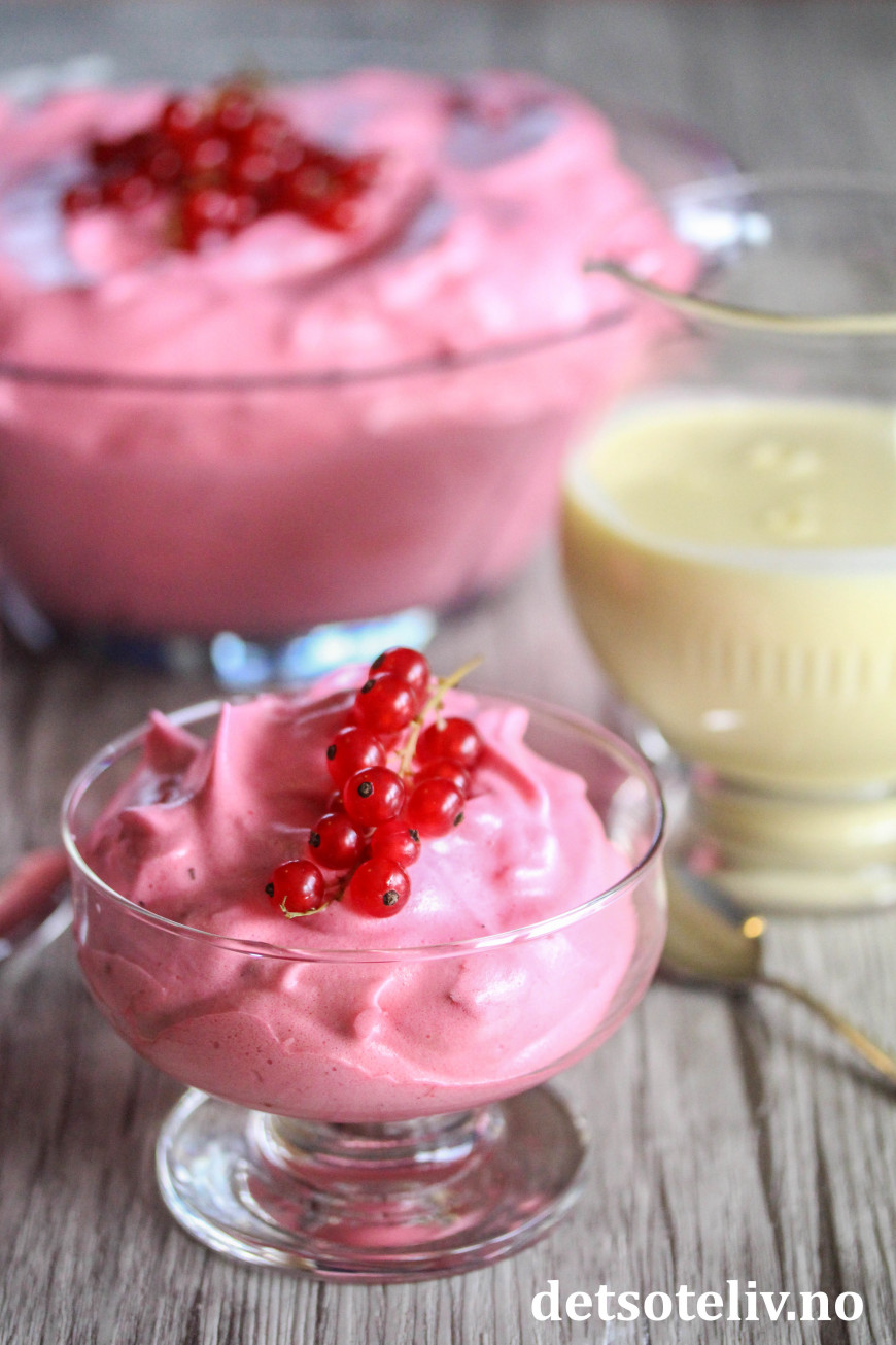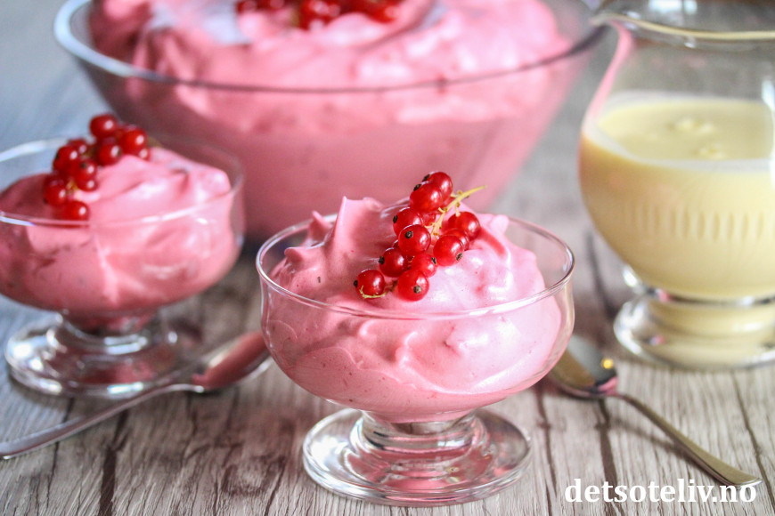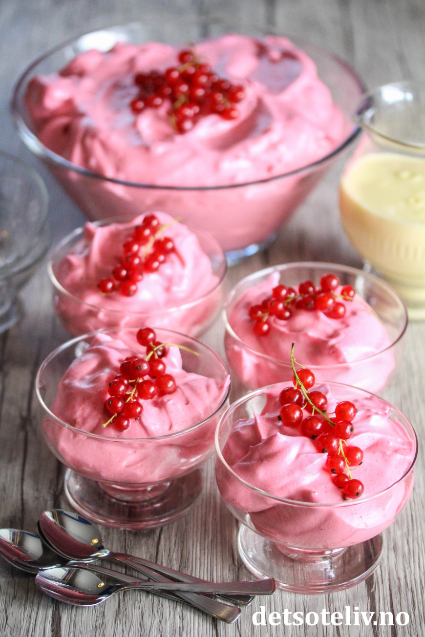 Pynt med friske rips, og server trollkremen sammen med vaniljesaus.